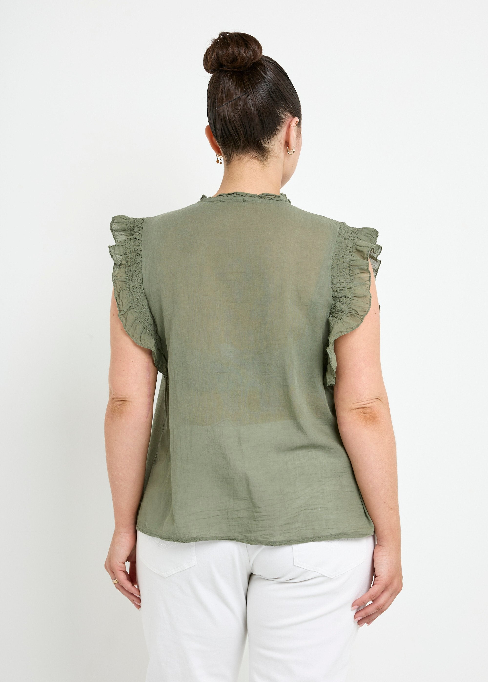 Camicetta_senza_maniche_in_voile_di_cotone_Kaki_FA1_curvy Camicetta_senza_maniche_in_voile_di_cotone_Kaki_DO1_curvy
