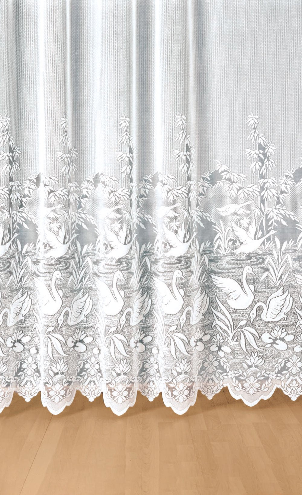 Per proteggervi da occhi indiscreti, maestosi cigni hanno preso possesso di questo superbo pannello in pizzo. Rifinito con una treccia overlock sui lati. Consegnato pronto per essere appeso con nastro di raccolta e ganci. Prodotto in Francia. Questo prodotto è certificato OEKO-TEX® STANDARD 100 da OEKO-TEX® (N° CQ 1236/1 IFTH).