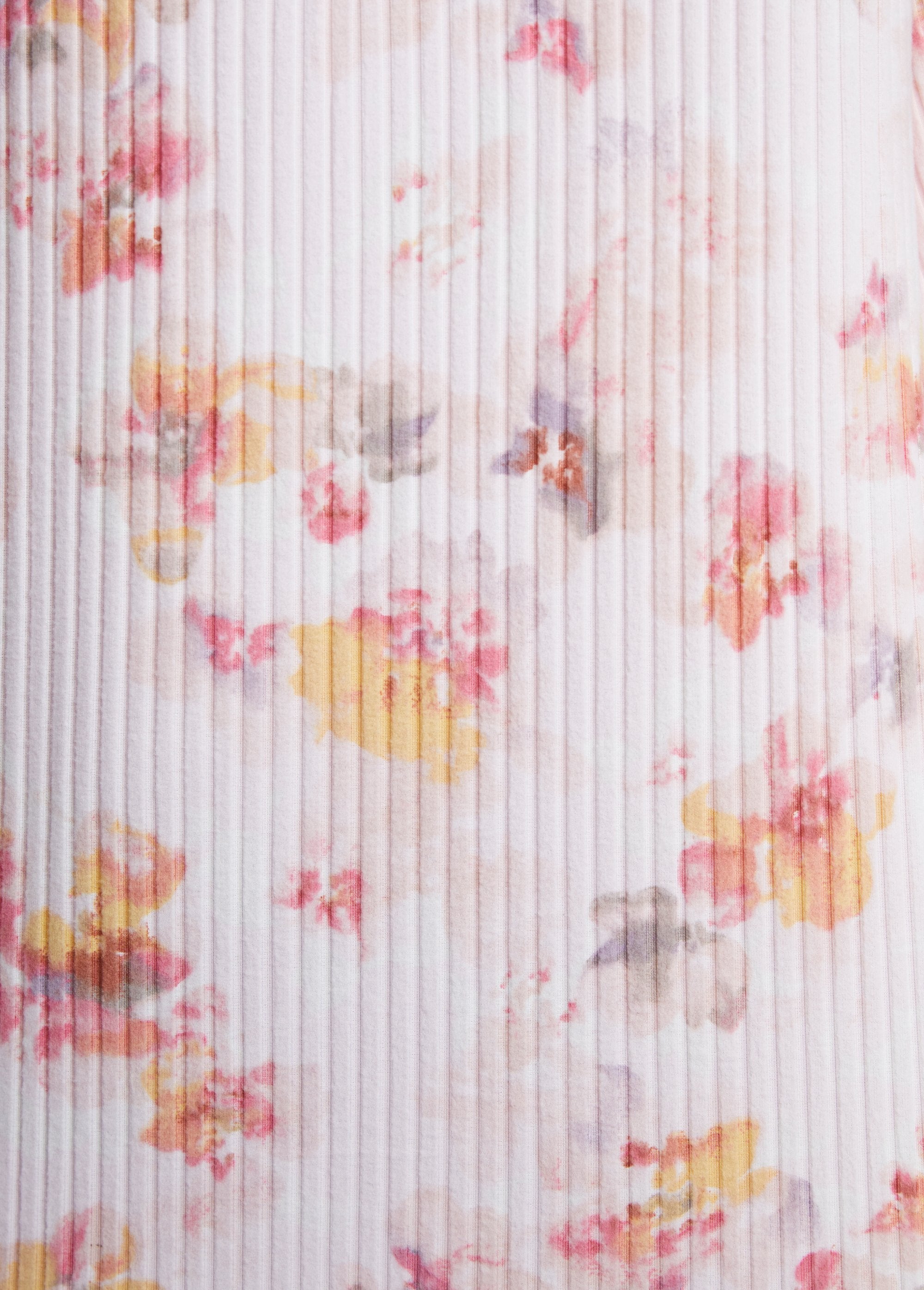 Materiale estivo per eccellenza, la maglia a coste elasticizzata contribuisce al comfort di questo accappatoio stampato con collo a kimono. Forma a doppio petto chiusa da una cintura liscia con passanti e laccetto interno. Carré in tinta unita aggiunto al fondo delle maniche a 3/4 e alla parte frontale. Orlo dritto. Sensazione di morbidezza.