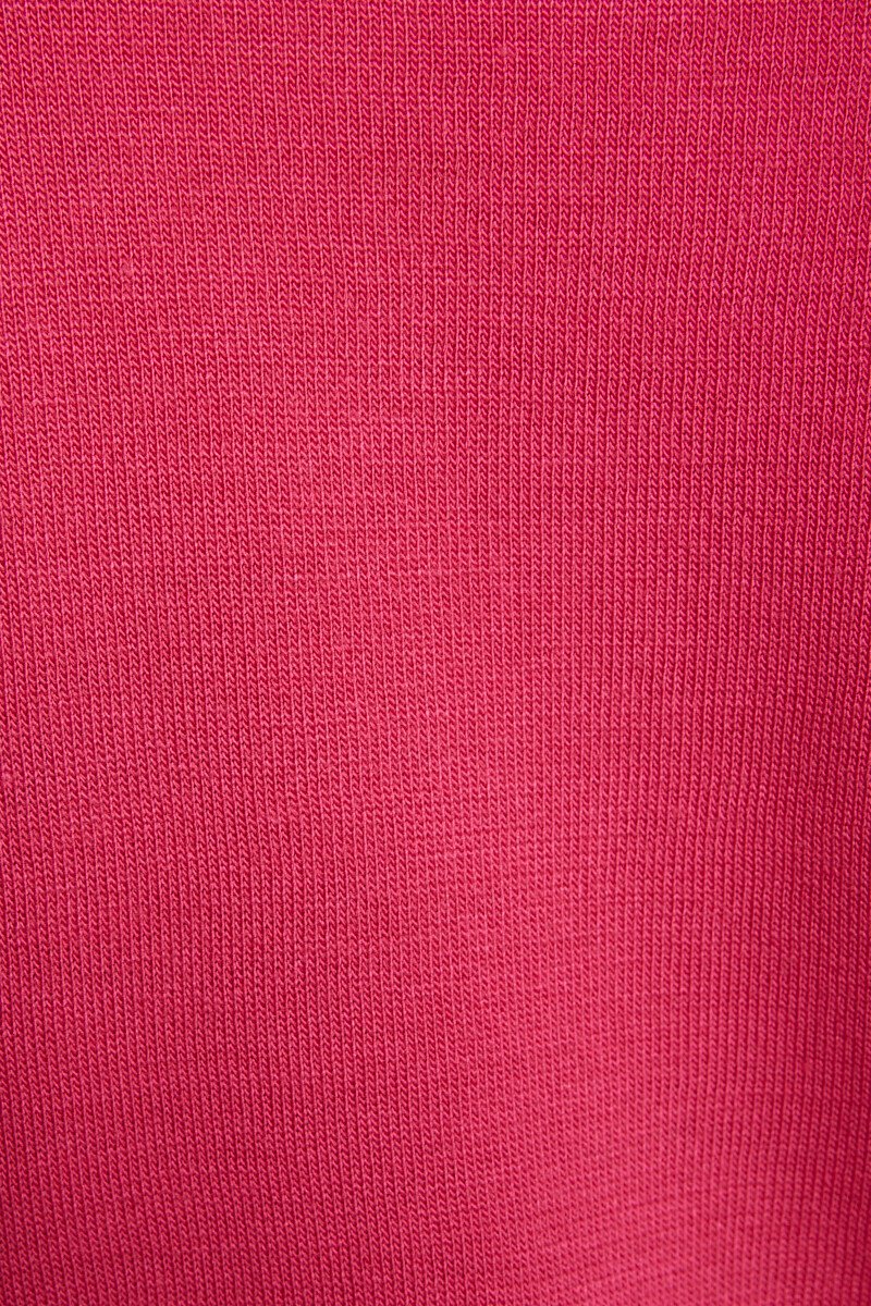 Maglia fantasia. Fascia centrale anteriore in jersey rovesciato con dettagli in perline, ricami e trafori. Nastro attaccato alla scollatura arrotondata. Nastro alla base e al fondo delle maniche corte.
