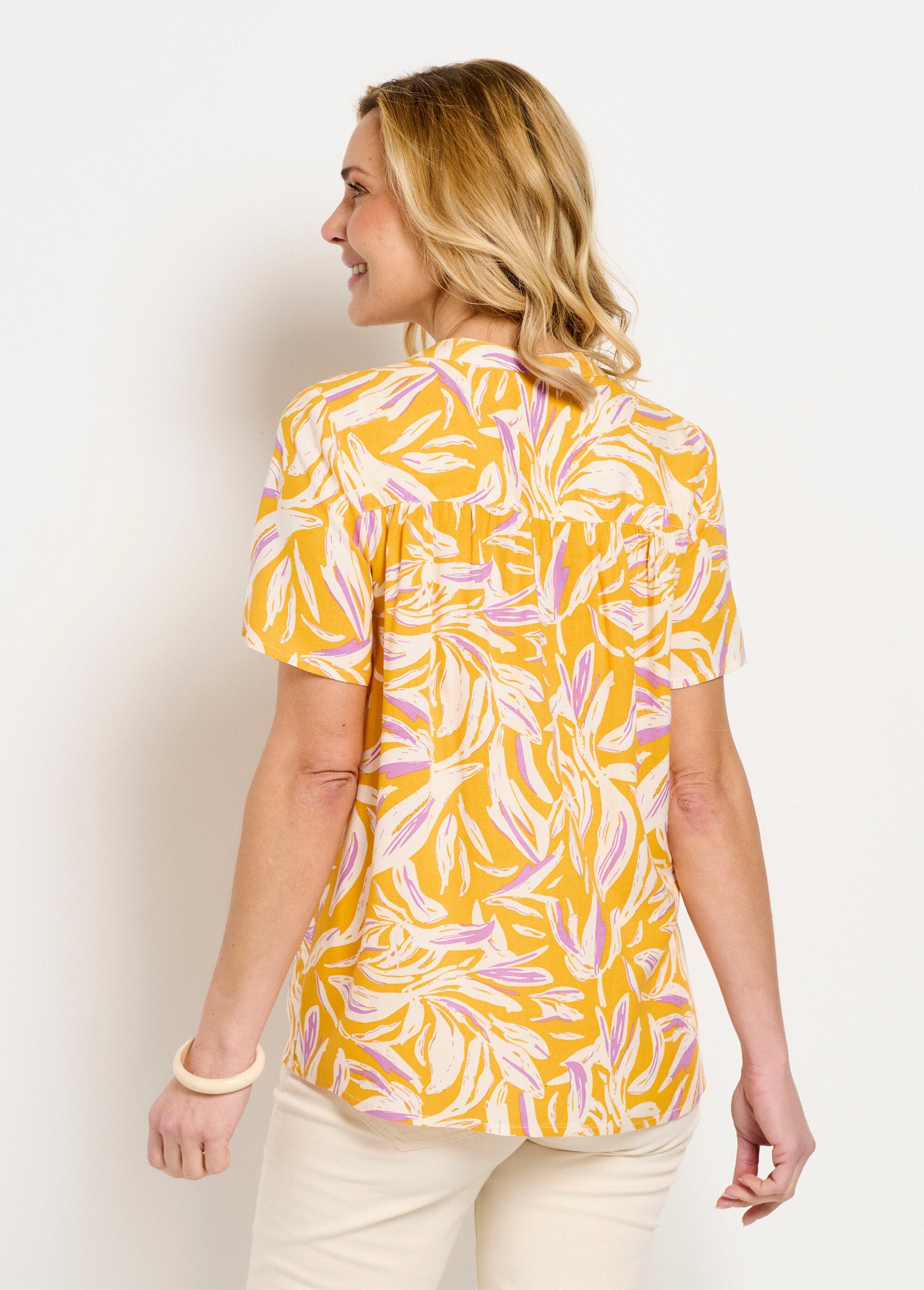 Tunica stampata con scollo a V e chiusura con bottoni  Jaune et blanc